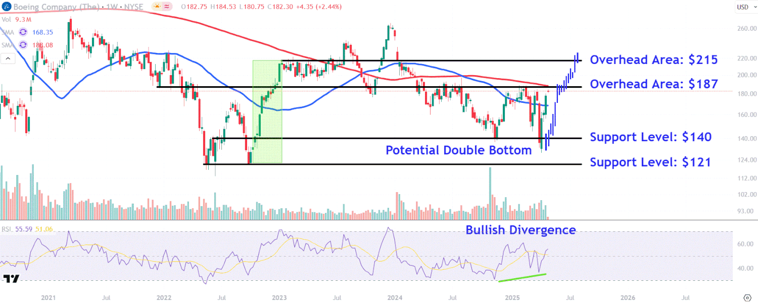 Assista a esses nĆveis de preƧos das aƧƵes da Boeing após a sĆ©rie de vitórias em 5 sessƵes